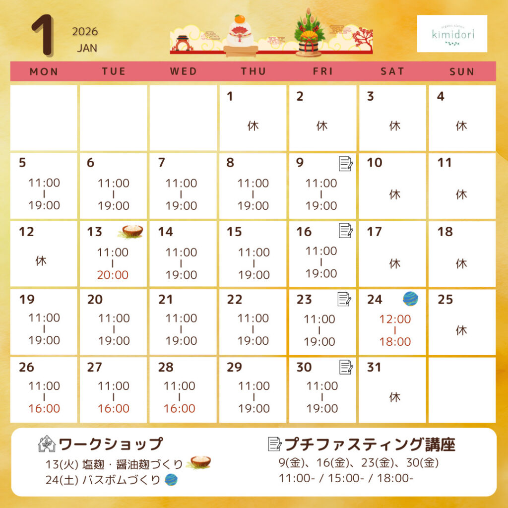 1/13(火)『塩麹・醤油麹づくり』1/24(金)『バスボムづくり』※参加申込はイベントページをご覧ください